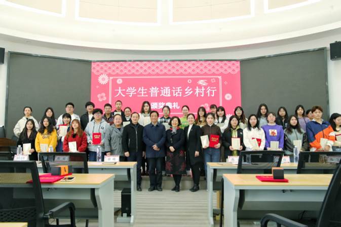陈瑛从讲政治、懂国情、会传播三点讲述了推广普通话的重要性,并感谢学生们在寒假期间为推广普通话、助力乡村振兴做出的努力。