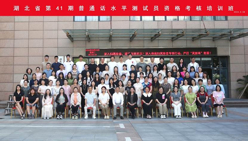 5月26日至6月4日,湖北省第41期普通话水平测试员资格培训班在武汉华中师范大学管理综合楼举办。来自全省各地的87名学员参加了紧张、充实的培训。