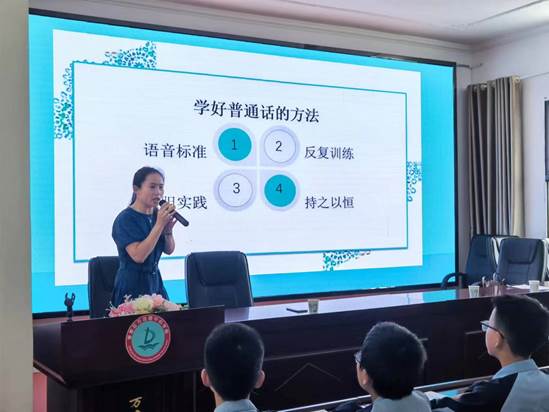 湖北省优秀普通话测试员付小铸老师与现场的老师和同学们就“学习普通话有多重要”进行了交流,老师和同学们积极发言,大家一致认为,学好普通话是我们日常学习的需要,是个人成长的需要,是日常交流的需要,是个人发展、成才的需要。