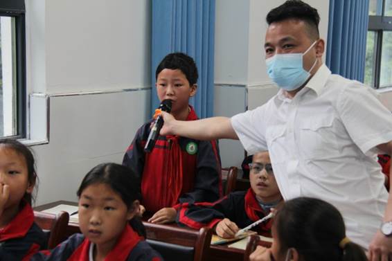 首先,推普团队走进青龙泉学校,为五年级学生讲授了一堂精彩的推普课。课堂上,推普团队王靖锋老师为孩子们精心挑选了一段朗读短文,引导孩子们反复朗读,与孩子们深度交流互动,在孩子们朗诵过程中,王靖锋及时指出短文中经常容易读错的字,并加以矫正发音。王靖锋还从什么是普通话、为什么要学习普通话、如何说好普通话等方面,向同学们讲解了推广普通话相关知识,王靖锋标准的语音语调,富含亲和力的教态充分调动孩子们积极参与,营造了活跃的课堂气氛。