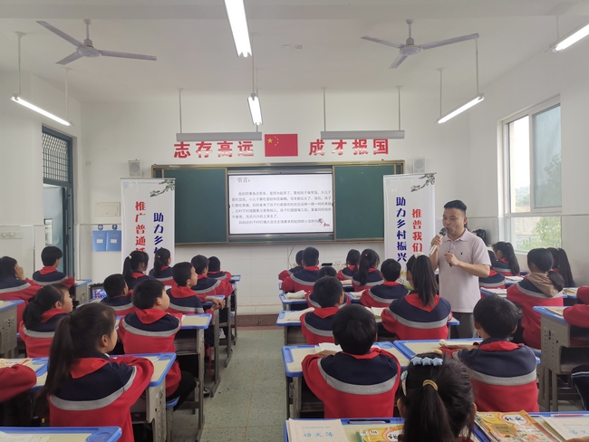 推普团队采取集中授课的方式,从“什么是普通话”“为什么要学习普通话”“普通话的语音系统是什么”和“如何说好普通话”四个方面,针对房县口音特点,融入房县诗经、黄酒等地方特色文化,用生动的语言和丰富的教学手段引导学生们诵读经典、准确发音。
