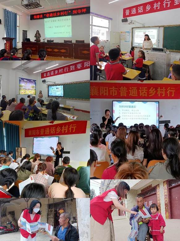 为补齐乡村普及普通话“听不懂”“不会说”“用不上”的“短板”,加大乡村地区的普通话推广普及力度,助力乡村振兴战略实施,5月底至6月初,襄阳市普通话培训测试中心组织普通话测试员在襄城区街东村彩虹雨幼儿园、卧龙镇中心幼儿园、东津新区中楼村新民幼儿园、老河口市竹林桥镇半店(明德)小学、枣阳市鹿头镇吉河村、吉河村小学、保康县寺坪镇小学等地开展“普通话乡村行”活动。