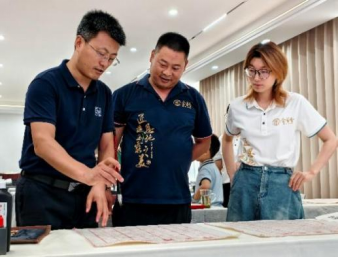 ▲推普实践队在茶厂体验“搓茶”工艺、交流书法文化