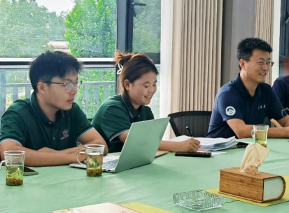 ▲推普实践队与金苔香茶厂工作人员座谈国家通用语言文字使用情况